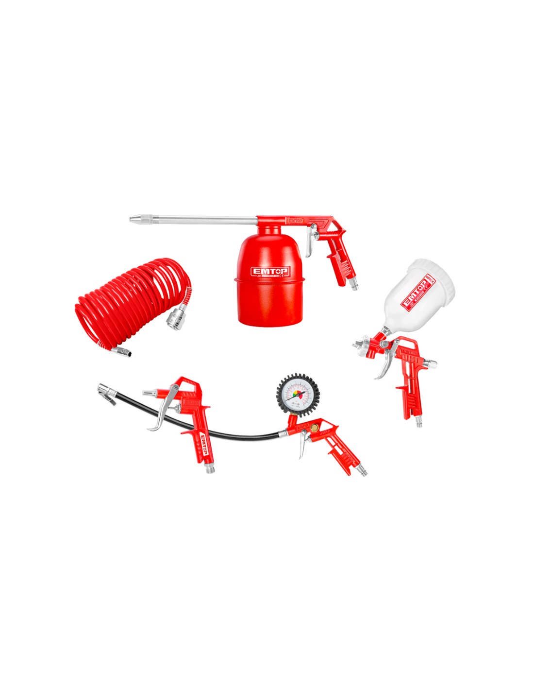 En concreto, este kit de accesorios de EMTOP para utilizar en tu compresor incluye diferentes objetos que podrás utilizar con tu máquina. Está presentado en blíster y compuesto por: