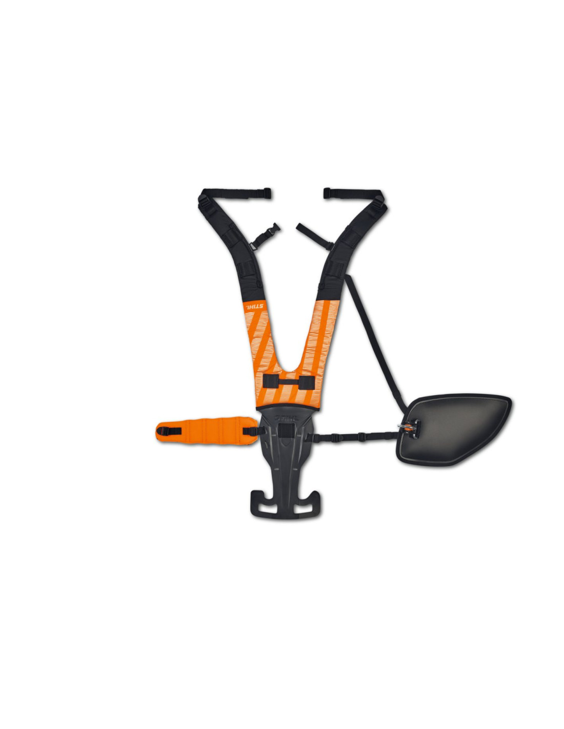El arnés FS ADVANCE X-Flex facilita el trabajo de los profesionales que utilizan una desbrozadora o un cortabordes STIHL en trabajos forestales o en jardinería y paisajismo . Nuestro arnés que cuenta con un cojín de apoyo con gancho en el lado derecho. En este gancho, puede enganchar cómodamente la desbrozadora o cortabordes de STIHL. Esto distribuye de manera óptima el peso del dispositivo sobre tu cuerpo durante el trabajo. En el lado opuesto del cojín de apoyo, se encuentra un cojín lateral que asegura una distribución uniforme de la carga, este detalle protege tus músculos y articulaciones.