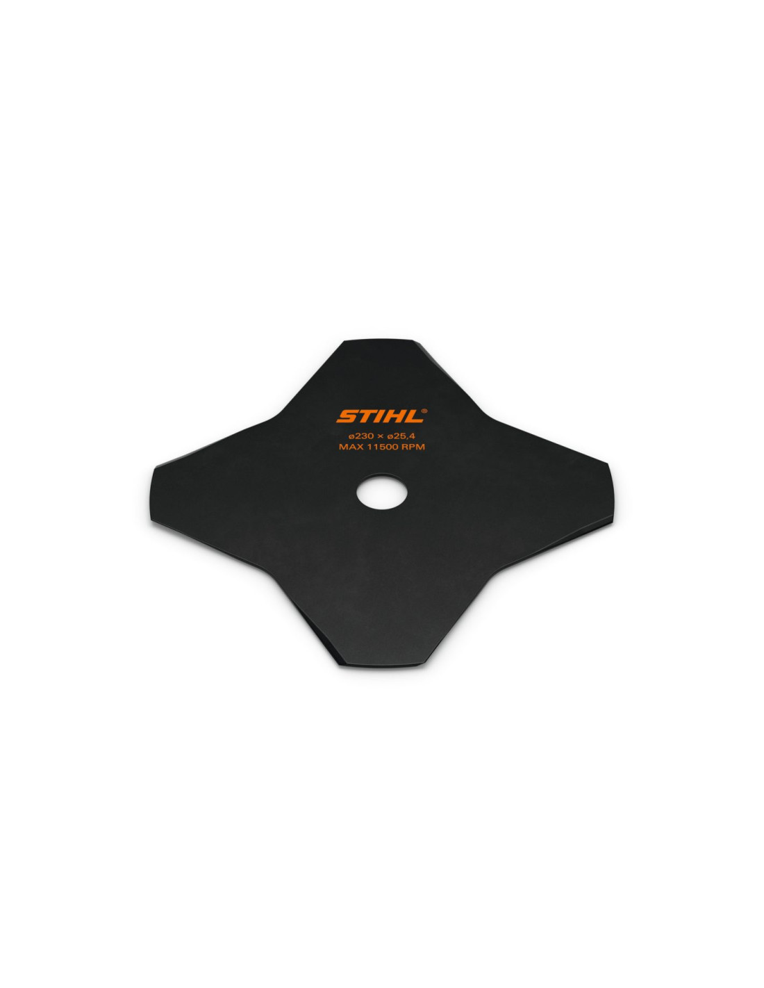 De acero con 4 dientes. Para trabajos en superficies de hierba resistente. Es obligatorio el uso de protectores con las herramientas de corte metálicas. Válido para FSA 90 / FS 55 (R) a FS 70 / FS-KM / FS 80 a FS 250 / FSA 130 (R) / KM 90 a KM 131 / FS 89 a FS 240 / FSA 130 (R) / FSA 135 (R).