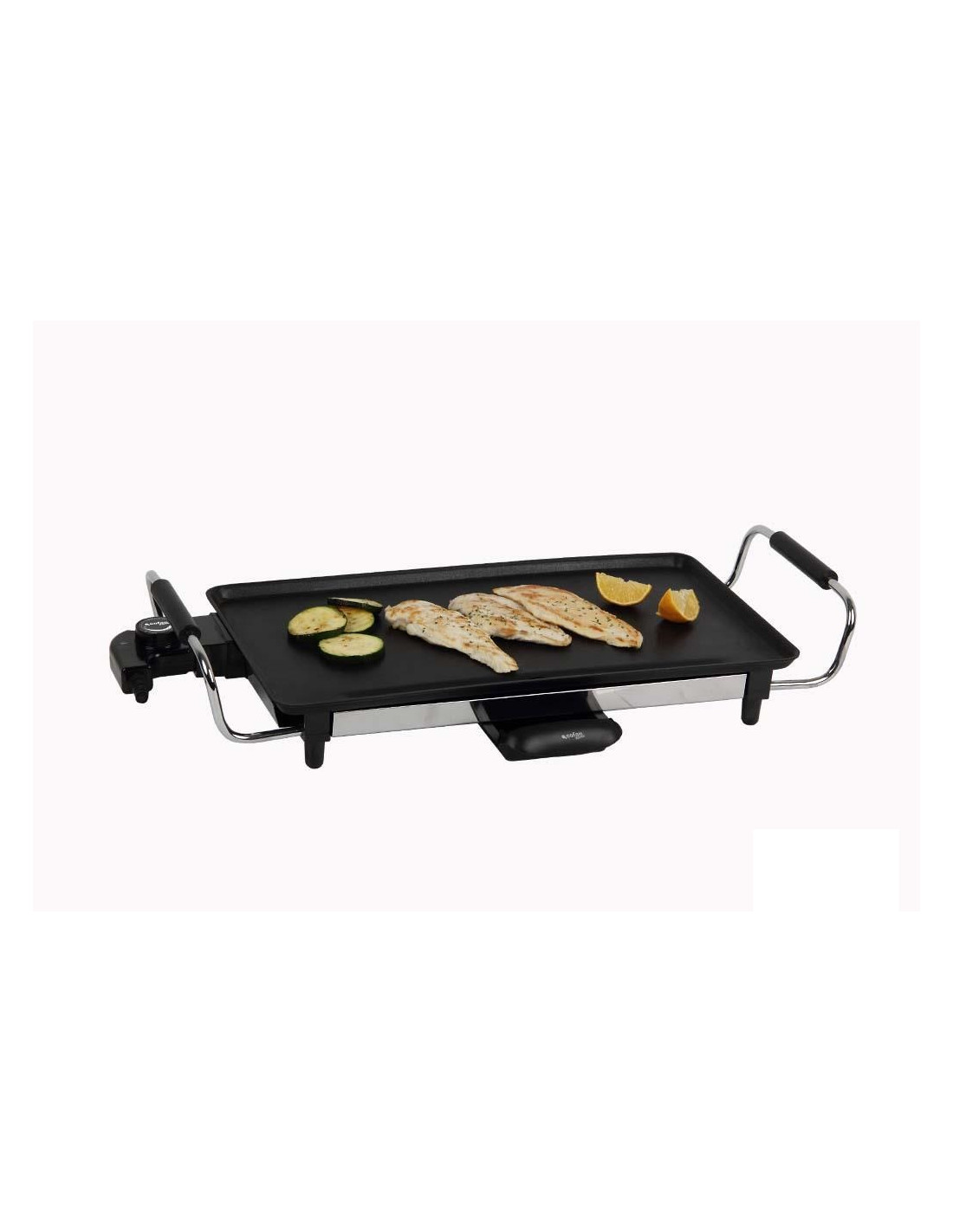 Plancha de asar con gran potencia (2000 W) para cocinar multitud de alimentos. Placa de aluminio con revestimiento antiadherente, contiene un granito resistente que distribuye el calor. Cable extraíble con temperatura regulable. Consta de dos asas de acero y polipropileno de tacto frío. Bandeja recogegrasa. Fácil de transportar para poder cocinar los alimentos donde tú prefieras. Limpieza sencilla. Garantía de 3 años.