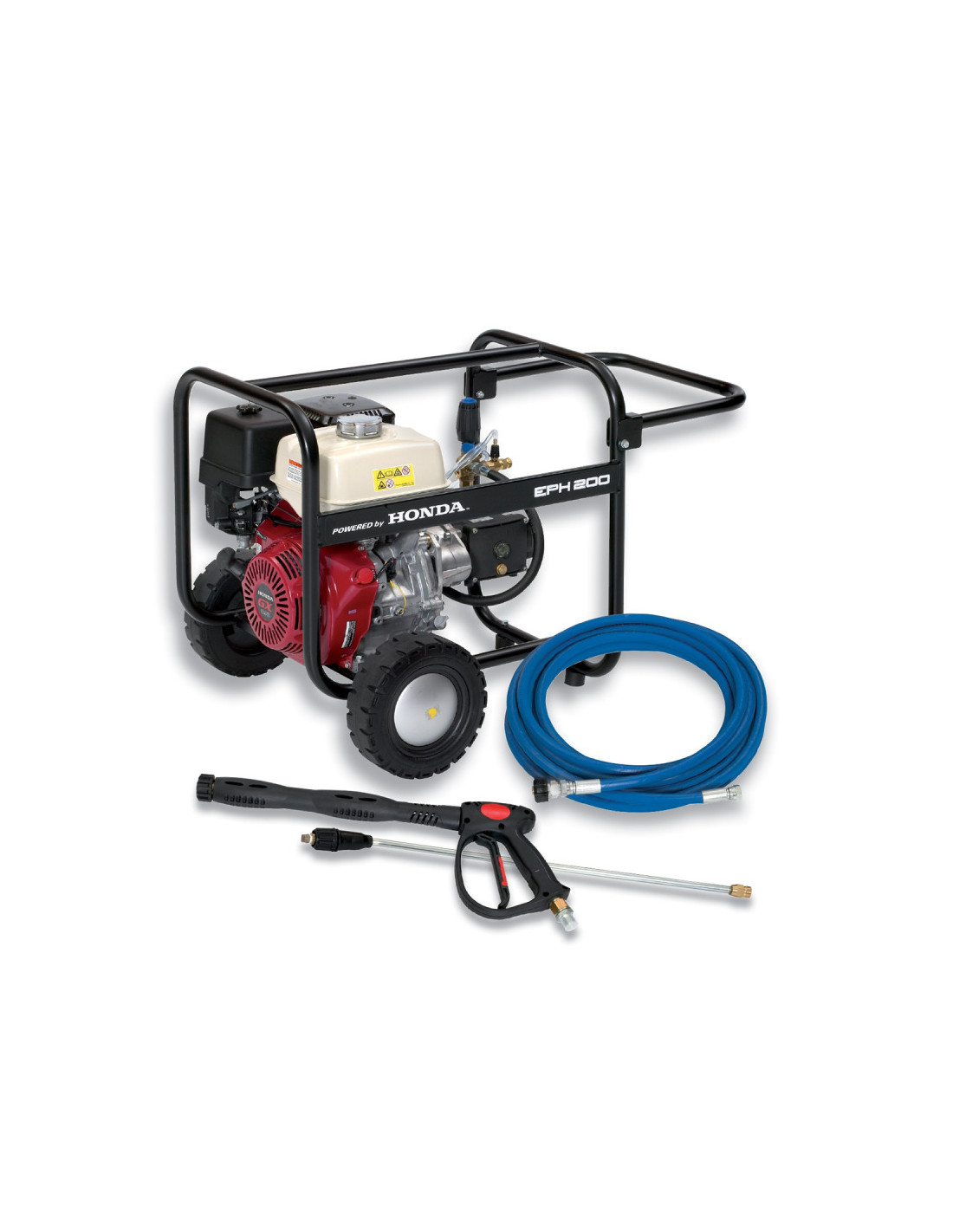 Apropiada para trabajos prolongados e intensivos, la hidrolimpiadora de alta presión EPH 200 asegura unos máximos niveles de flexibilidad y autonomía. Este modelo está especialmente indicado en los sectores agrario, ganadero, construcción, limpiezas, etc. Con estructura tubular de acero pintada con polvo epoxi, viene equipada de serie con bomba de alta presión con tres pistones cerámicos y cabezal de bronce, con reductora, filtro de agua, válvula by-pass automática y manómetro.