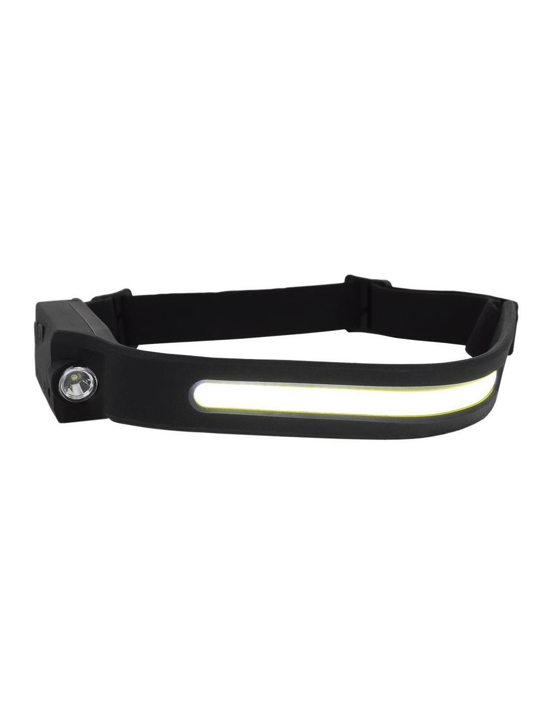 La banda elástica de la linterna dual está fabricada en silicona ultra resistente, proporcionando un ajuste perfecto a la cabeza. Es una linterna muy cómoda para llevar a cualquier parte o en cualquier situación. Es ideal para usar en rutas nocturnas, trabajos en condiciones de oscuridad o para cualquier aplicación en entornos en los que la iluminación sea limitada. Tiene dos tipos de lámparas: una Led COB de hasta 350 lm y otra XPE, de hasta 120 lm. Cada tipo de foco tiene dos niveles de intensidad lumínica, para garantizar que la iluminación proporcionada sea la deseada. Su sensor de aproximación le permite activar o desactivar la luz a conveniencia. Linterna LED con una batería recargable incorporada que se puede cargar con USB (cable incluido).