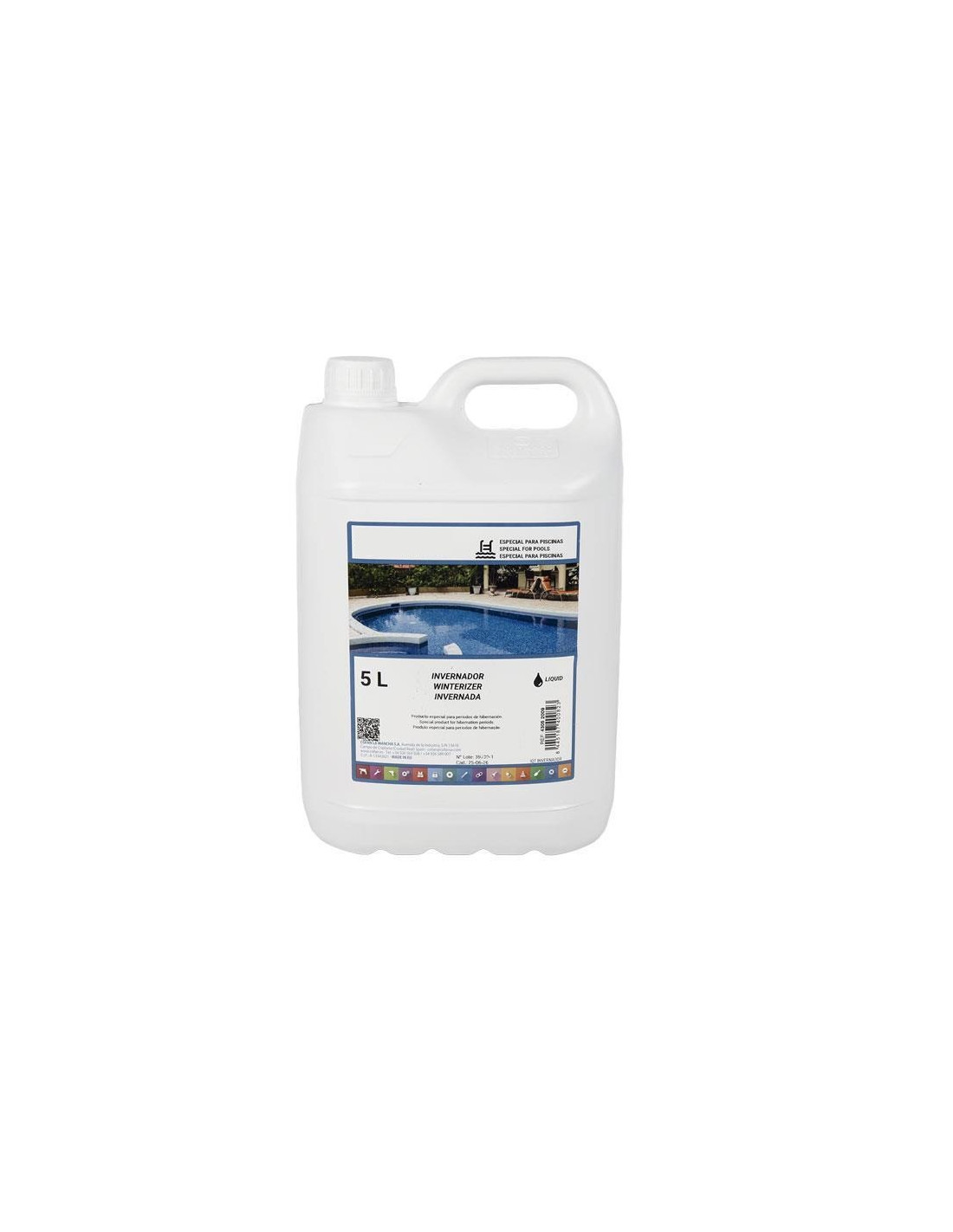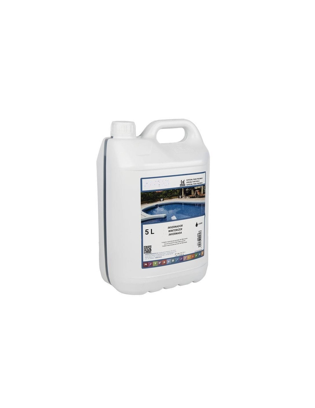 El invernador líquido para piscinas de 5 litros mantiene la piscina en perfectas condiciones durante los meses de invierno, asegurando que el agua se mantenga limpia y lista para usar cuando llegue la temporada de baño. Este invernador líquido tiene un potente efecto desinfectante que previene el crecimiento de microorganismos no deseados en tu piscina. Al utilizarlo, aseguras que el agua se mantenga clara y sin olores desagradables durante todo el periodo de hibernación. Gracias a su formulación avanzada, este producto impide el desarrollo de algas y hongos, que suelen proliferar en el agua estancada. Así, evitas el trabajo extra de limpiar la piscina en profundidad al inicio de la temporada. Puedes aplicar el invernador directamente en el agua de la piscina o diluirlo previamente. Su uso es sencillo y no requiere de conocimientos especializados. Además, no produce espuma, lo que facilita el mantenimiento y la limpieza posterior. Incluye instrucciones claras para su uso tanto en el tratamiento de preparación como en el tratamiento de mantenimiento. Esto asegura que la piscina esté bien protegida durante todo el invierno, sin importar las condiciones climáticas. Este invernador es adecuado para todo tipo de piscinas, ofreciendo una protección completa y eficiente. Modo de Empleo. Tratamiento de Preparación: asegura que el pH del agua esté entre 7,2 y 8 utilizando un kit de test de cloro y pH. Añade 2,5 kg de Cloro Choque por cada 100 m³ de agua y deja que la depuradora funcione durante un día para asegurar una disolución homogénea. Finalmente, añade 2-2,5 litros del invernador líquido por cada 50 m³ de agua a tratar. Tratamiento de Mantenimiento: Cada 2-3 meses, añade entre 2-2,5 litros de invernador líquido por cada 50 m³ de agua. Advertencias: mantén el producto fuera del alcance de los niños. Puede provocar irritación ocular grave (H319). Muy tóxico para los organismos acuáticos, con efectos nocivos duraderos (H400, H410).