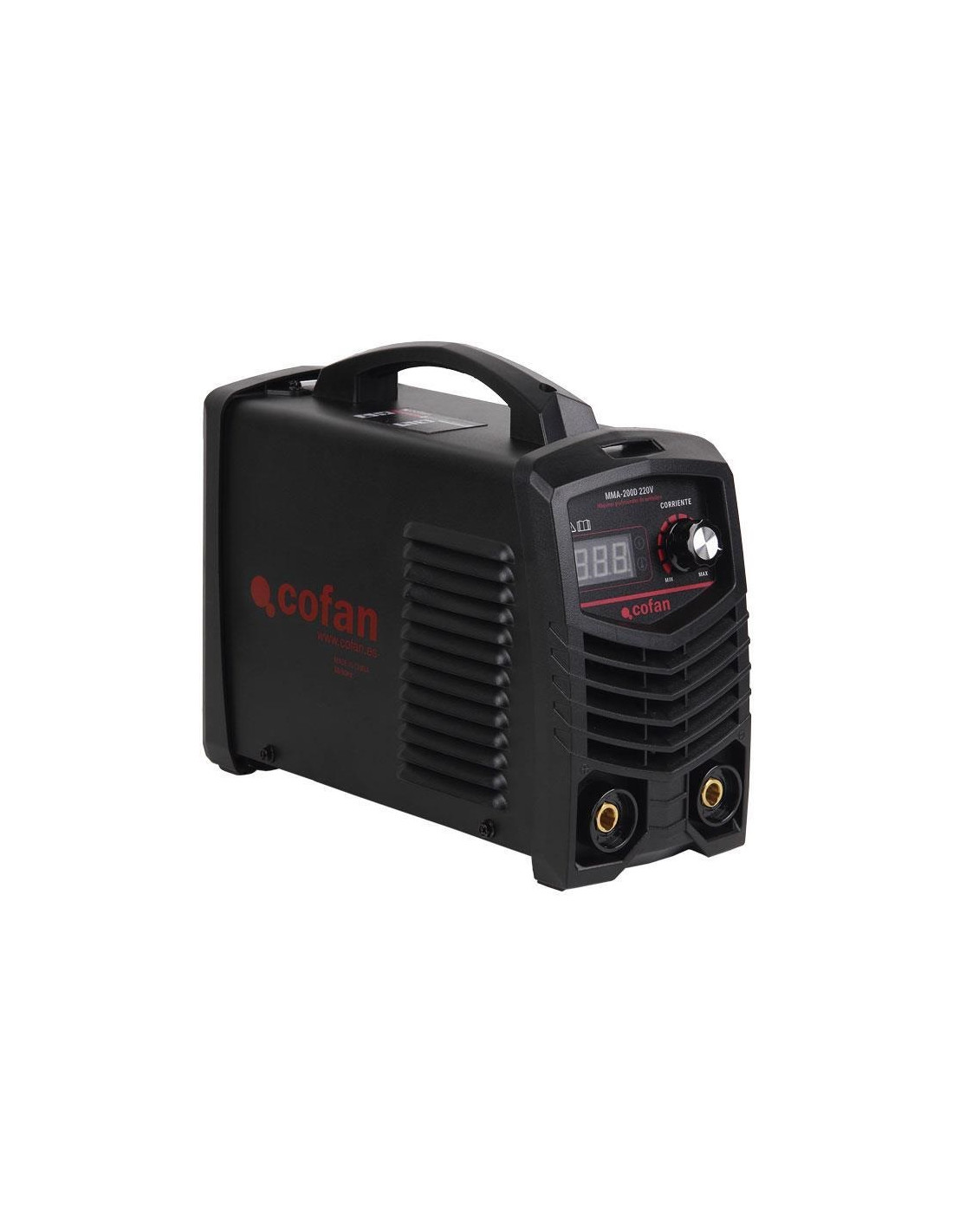Circuito de medio puente con tecnología avanzada de inversor igbt, salida CC, alta eficiencia, ahorro de energía. Con indicador de O.C. y O.H. protección y arranque en caliente. Portátil y ligero, fácil de transportar. Uso especial para operaciones en altura, agrícolas, bricolaje, tanto en interiores como exteriores. Nº RII-AEE de Cofan La Mancha; 7038.