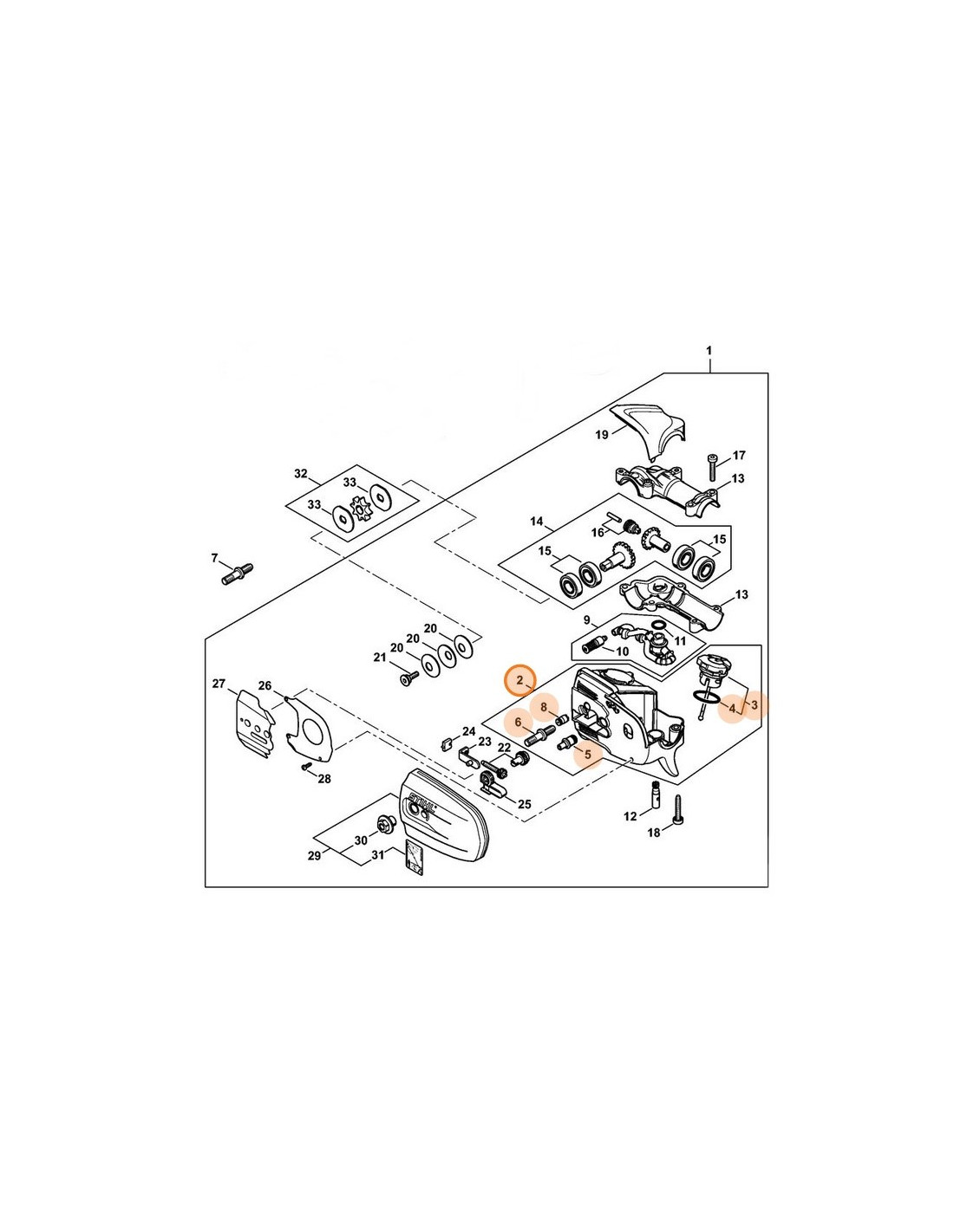 Denominaciones STIHL: Carcasa, deposito aceite