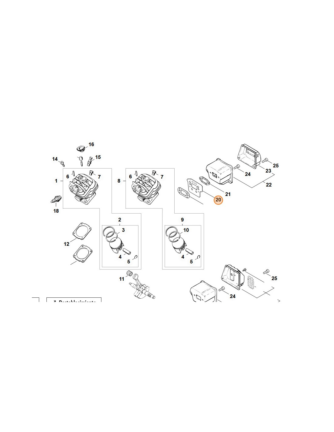 Denominaciones STIHL: Chapa escape, elemento silenciador chapa refrigeración