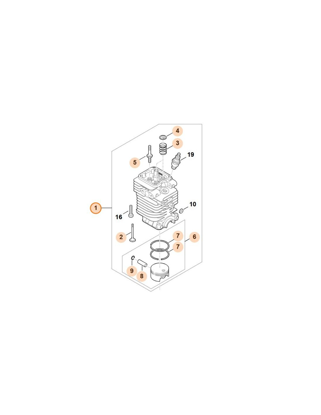 Denominaciones STIHL: Cilindro con pistón Ø 43 mm