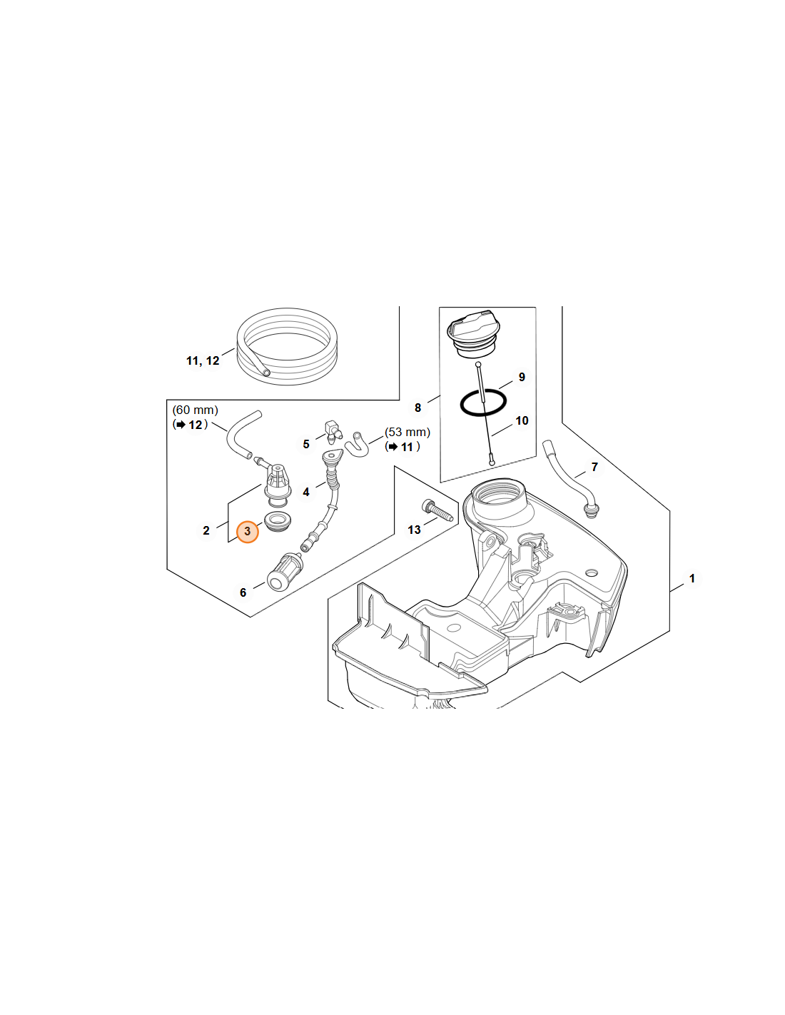 Denominaciones STIHL: Boquilla, Junta, Anillo de goma, Junta