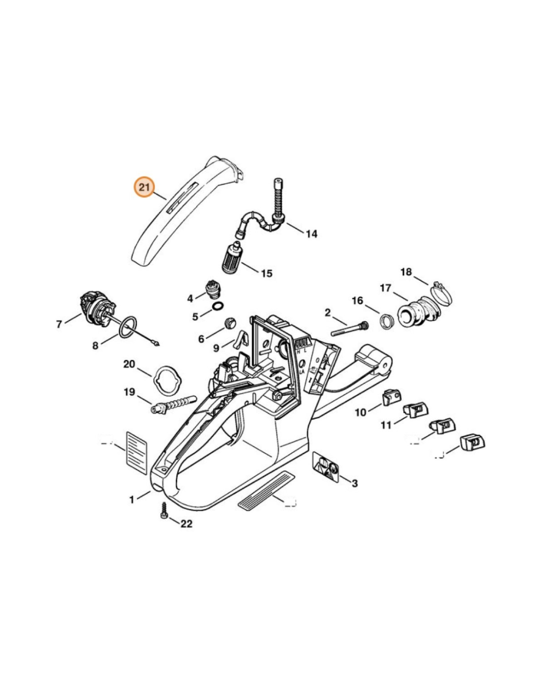 Denominaciones STIHL: Cubierta, asa, mando, empuñadura