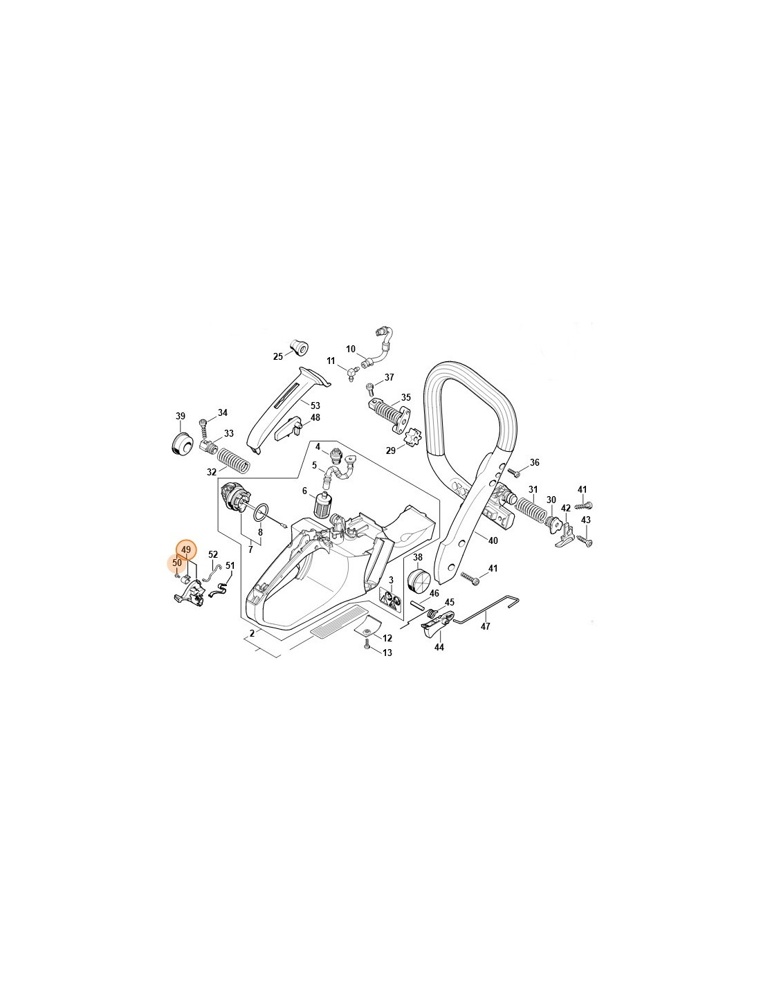 Ubicación Alojado en la empuñadura trasera de la motosierra