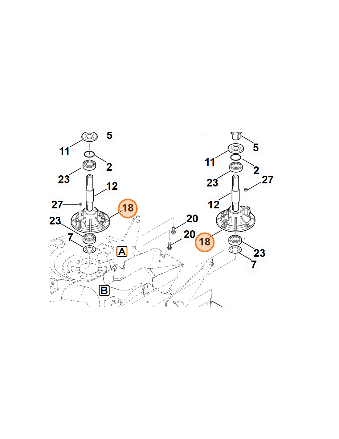 Denominaciones STIHL: Soporte del cojinete, Buje, Buje soporte de cuchilla tractor cortacésped STIHL y VIKING