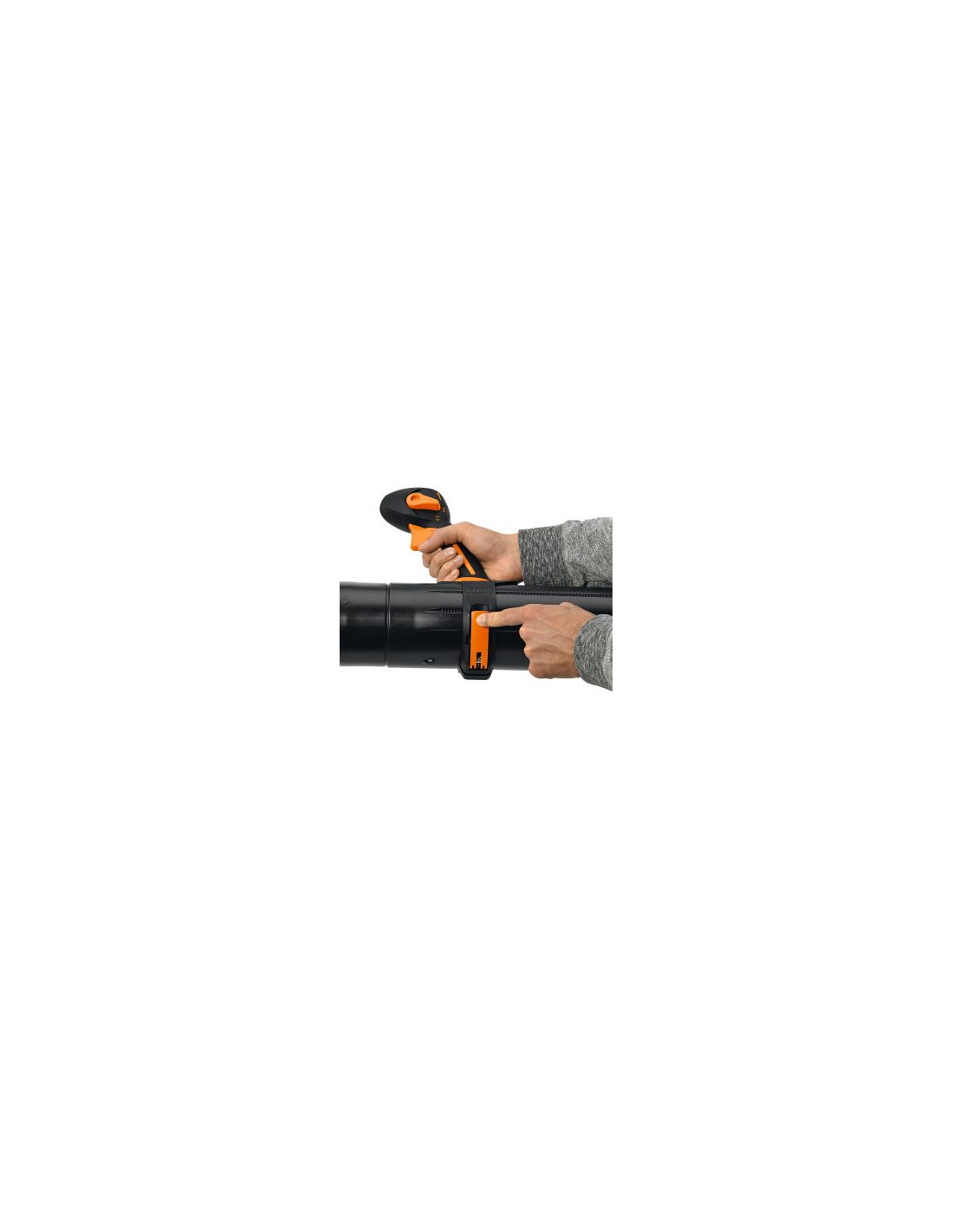 El mando multifunción de una sola mano, ubicado en el tubo de soplado, permite un control seguro e intuitivo de todas las funciones del motor. El tubo cuenta con ajuste de longitud continuo, que se adapta fácilmente a la altura del usuario o al tipo de trabajo, y el mango puede regularse sin herramientas. El acelerador con botón de parada permite bloquear la potencia deseada y detener el soplador con un simple toque, quedando listo para volver a arrancar de inmediato.