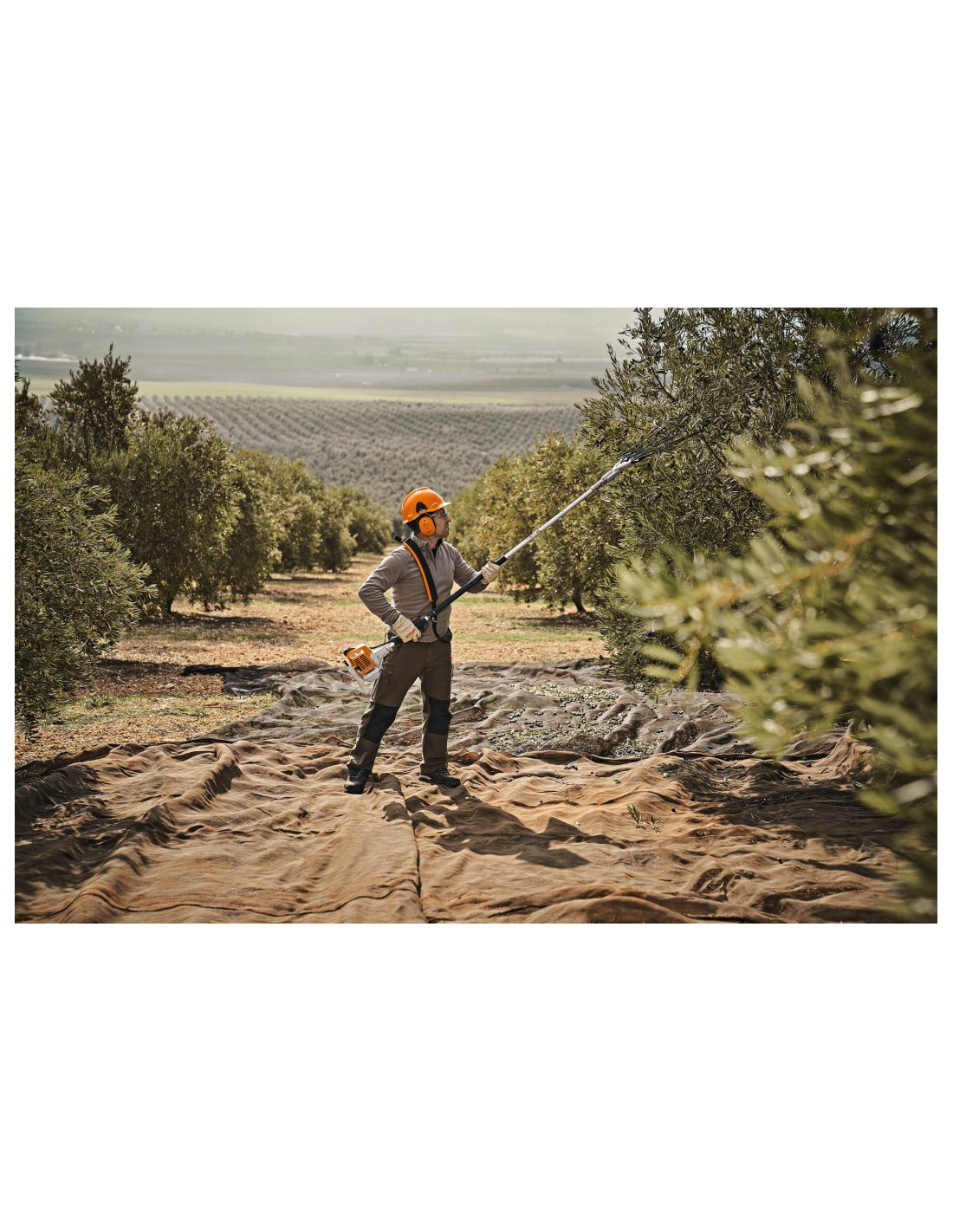 Vareador ligero con un robusto motor 2-MIX. Consume hasta un 20% menos de combustible y emite hasta un 70% menos de gases, en comparación con motores de dos teimpos convencionales sin tecnología 2-MIX. Con cómodo arranque gracias al STIHL ErgoStart, incluye también un nuevo sistema de control de velocidad, que adecúa la misma a las necesidades del trabajo que se esté realizando para no dañar al árbol. Peines formados por dedos de carbono. Muy eficaz en la recolección de aceitunas, pero también para frutos secos, como nueces o pistachos.